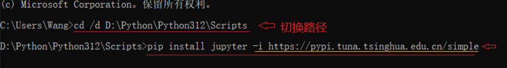 这样下载速度可能较慢,可以使用镜像源加速,以下是使用清华源安装 Jupyter Notebook,在上述 pip 命令中添加-i https://pypi.tuna.tsinghua.edu.cn/simple 即可: