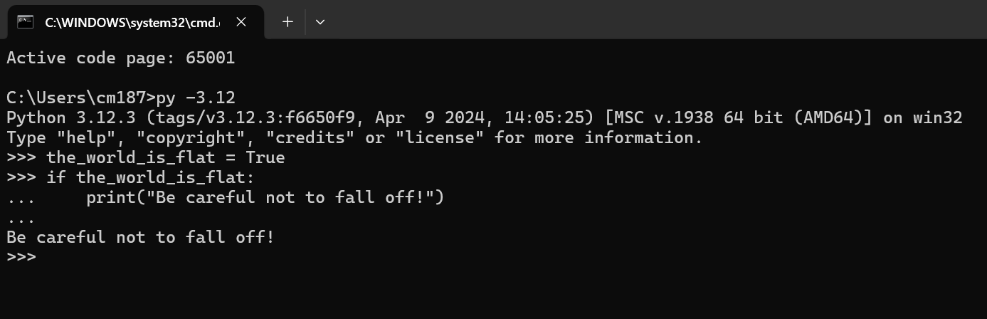 1 | C:\Users\cm187>py -3.12 |